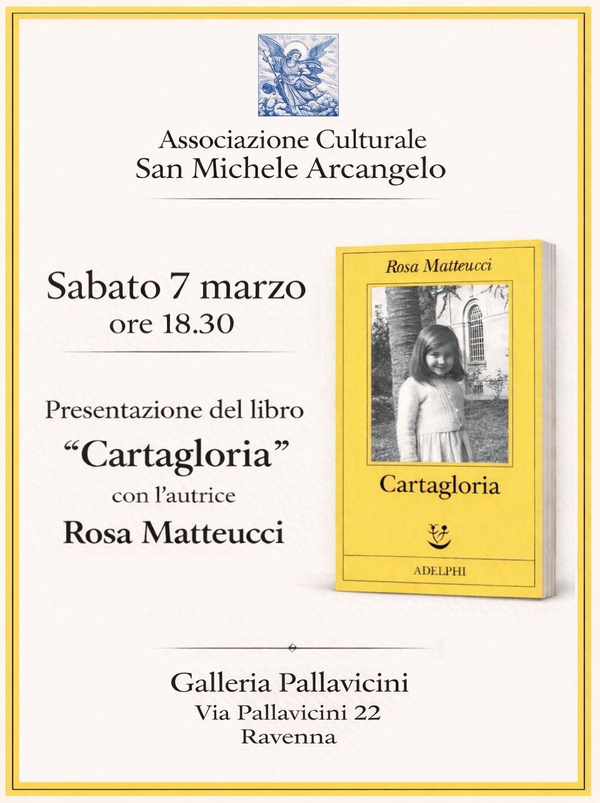 Rosa Matteucci presenta "Cartagloria" a Ravenna incontro con l'autrice Ravenna, Galleria Pallavicini- via Pallavicini, 227 Marzo 2026 ore 18:30