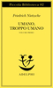 Umano, troppo umano, I (1878) è la prima opera di Nietzsche presentata in quella forma aforistica che si rivelerà poi essere la sua più peculiare. Con questo libro Nietzsche sentì di avere compiuto «un vero progresso –, verso me stesso», collegato innanzitutto al suo graduale svincolarsi dalle due esperienze decisive della sua giovinezza: la filosofia di Schopenhauer e l’arte di Wagner. Liberazione necessariamente dolorosa, per cui queste pagine possono anche essere viste come «il monumento di una crisi». Ma anche percorso segnato da scoperte sorprendenti, dal momento in cui tutta una serie di impulsi conoscitivi, accantonati o repressi per la vicinanza di Wagner e del suo ambiente, vengono lasciati liberi di espandersi in una meditazione solitaria. Qui appare già, con tutta la sua potenza corrosiva, il Nietzsche che dubita, che mina ogni certezza, che si addestra allo stile tagliente dei grandi moralisti francesi – in breve il Nietzsche stilisticamente più moderno. E non si tratta solo di una conquista stilistica. Con l’aforisma si manifesta una nuova fase della conoscenza: esso induce a una sorta di lampeggiamento razionale, all’analisi come incursione fulminea, che getta luce su un punto concreto, prima di ritrarsi nell’oscurità. Così, questa forma diventa l’arma naturale di «uno spirito spietato, che conosce tutti i nascondigli dove l’ideale sta di casa». Qui si può dire che assistiamo all’origine di quelle «dure cose di psicologia» che costelleranno sino alla fine l’opera di Nietzsche – e avvieranno a molte delle sue più preziose intuizioni.
